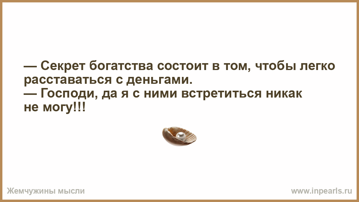 — Секрет богатства состоит в том, чтобы легко расставаться с деньгами. — Господи, да я с ними встретиться никак не могу!!!