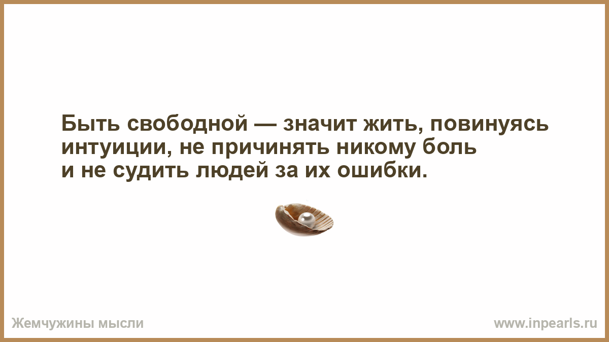 Быть свободной — значит жить, повинуясь интуиции, не причинять никому боль и не судить людей за их ошибки.