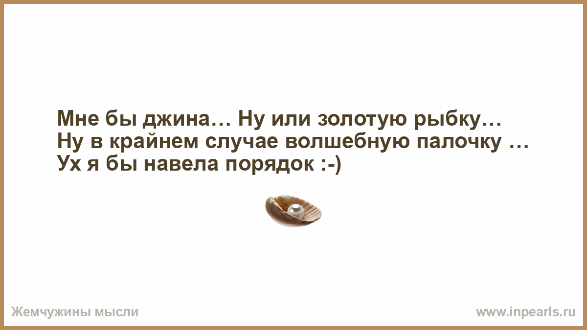 Мне бы джина… Ну или золотую рыбку… Ну в крайнем случае волшебную палочку … Ух я бы навела порядок :-)