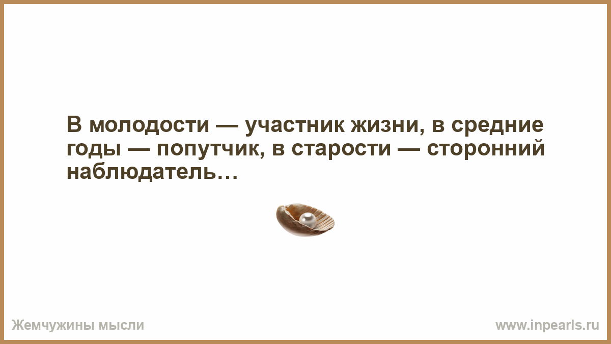 В молодости — участник жизни, в средние годы — попутчик, в старости — сторонний наблюдатель…