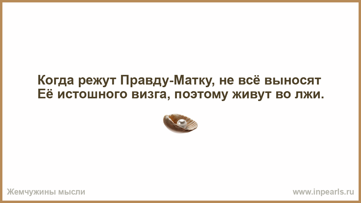 Когда режут Правду-Матку, не всё выносят Её истошного визга, поэтому живут во лжи.