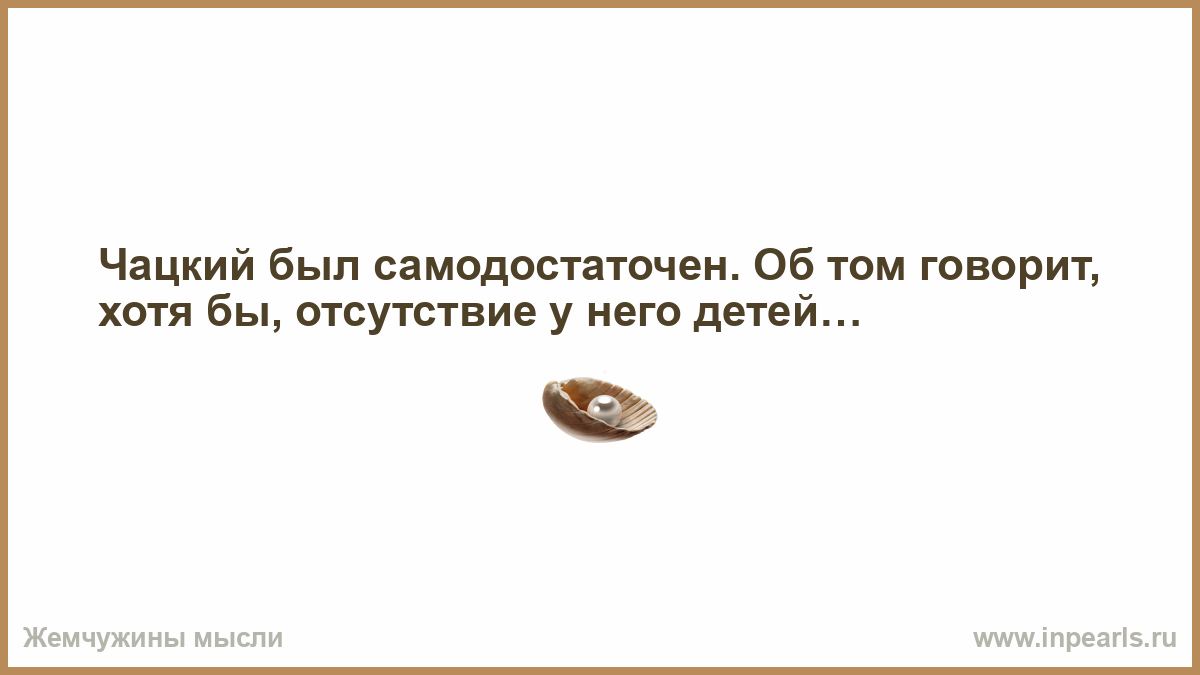 Чацкий был самодостаточен. Об том говорит, хотя бы, отсутствие у него детей…