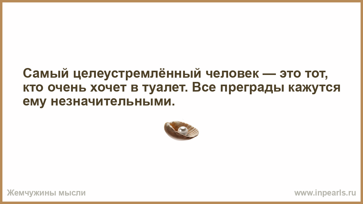 Самый целеустремлённый человек — это тот, кто очень хочет в туалет. Все преграды кажутся ему незначительными.