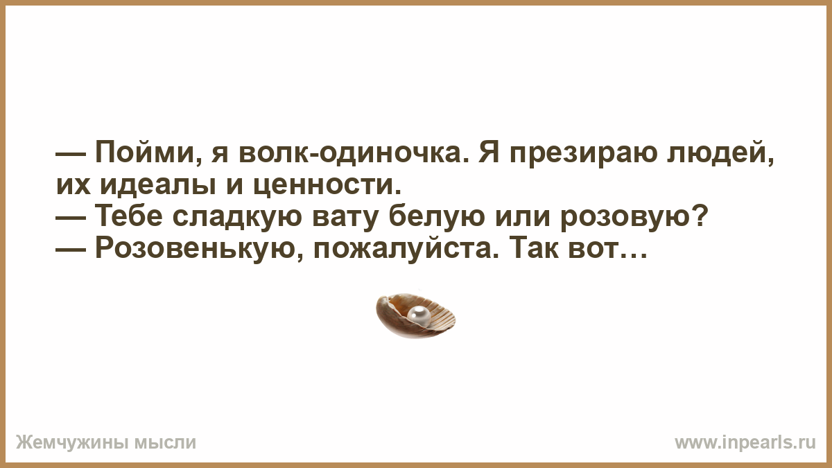 — Пойми, я волк-одиночка. Я презираю людей, их идеалы и ценности.