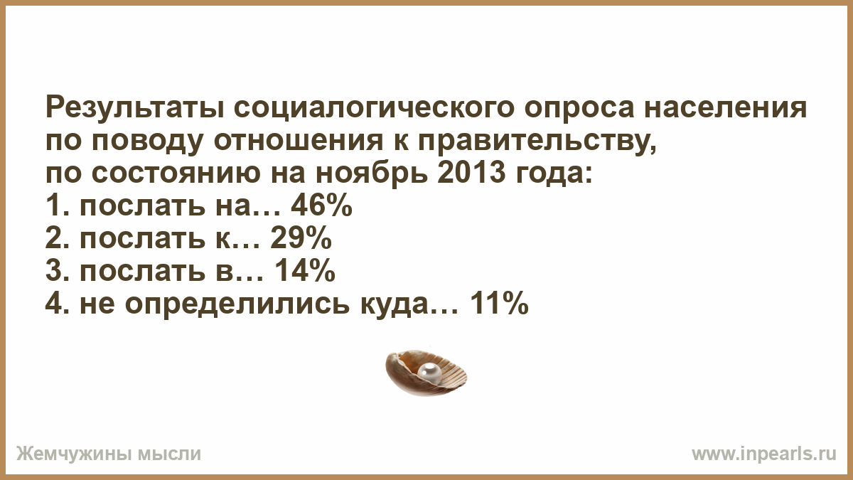 Результаты социалогического опроса населения по поводу отношения к правительству, по состоянию на ноябрь 2013 года: