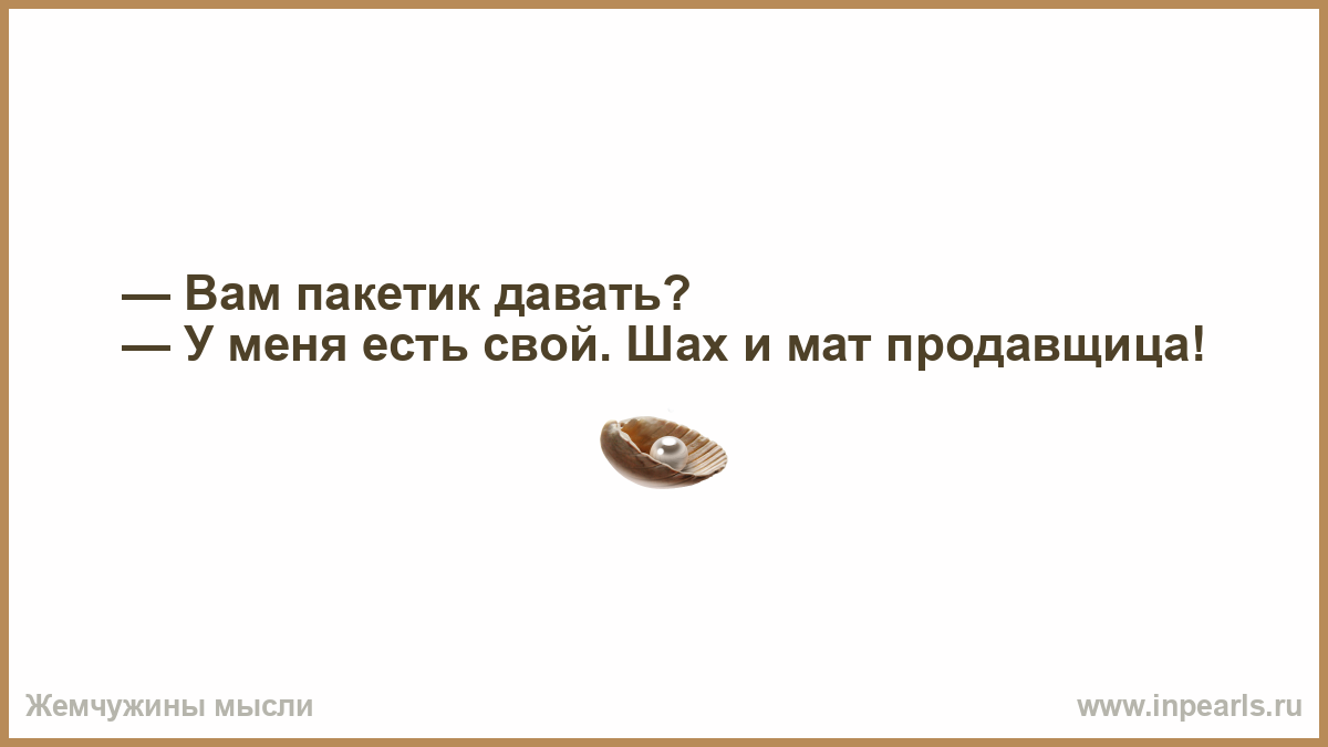 — У меня есть свой. Шах и мат продавщица!