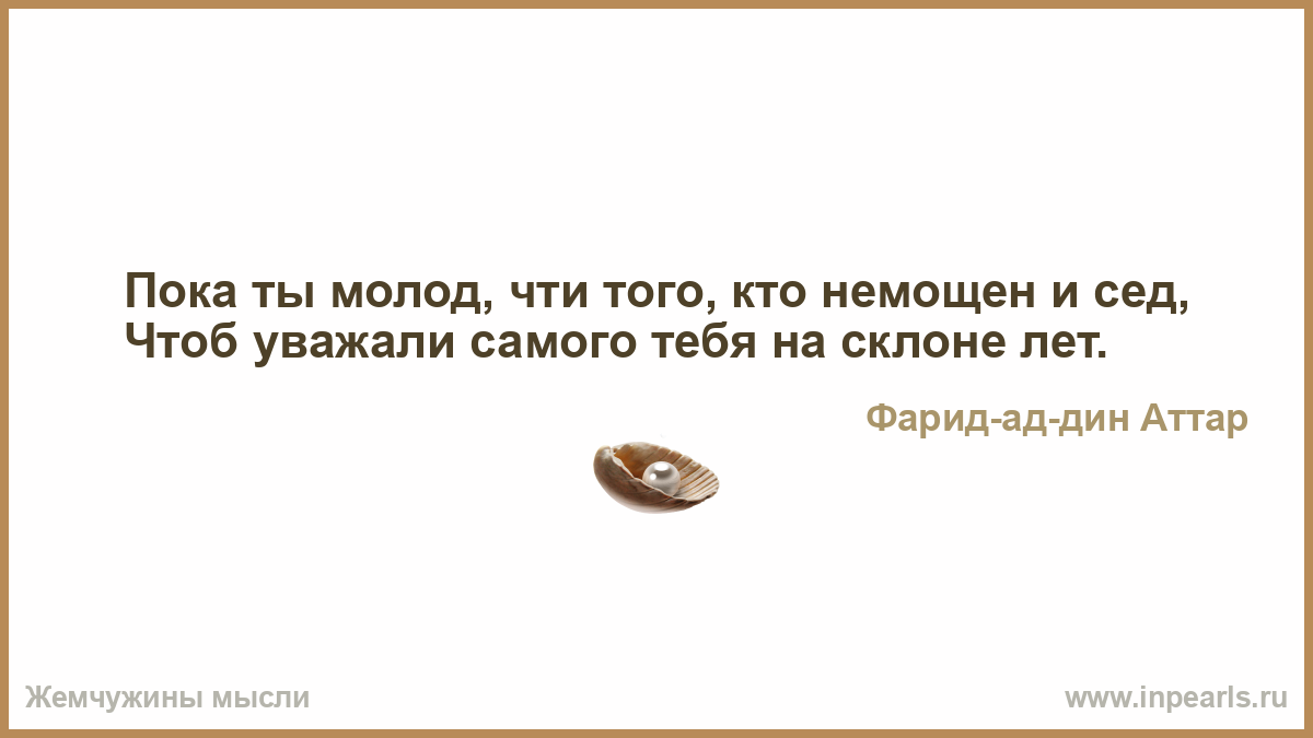 Пока ты молод, чти того, кто немощен и сед, Чтоб уважали самого тебя на склоне лет.