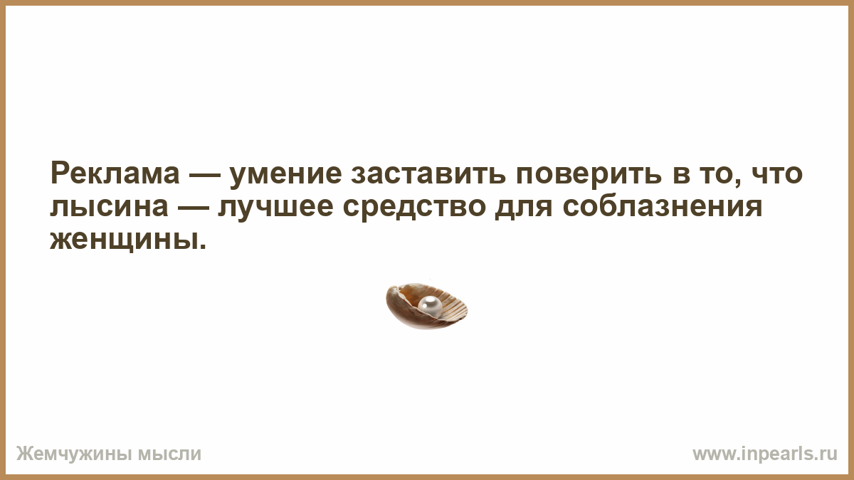 Реклама — умение заставить поверить в то, что лысина — лучшее средство для соблазнения женщины.