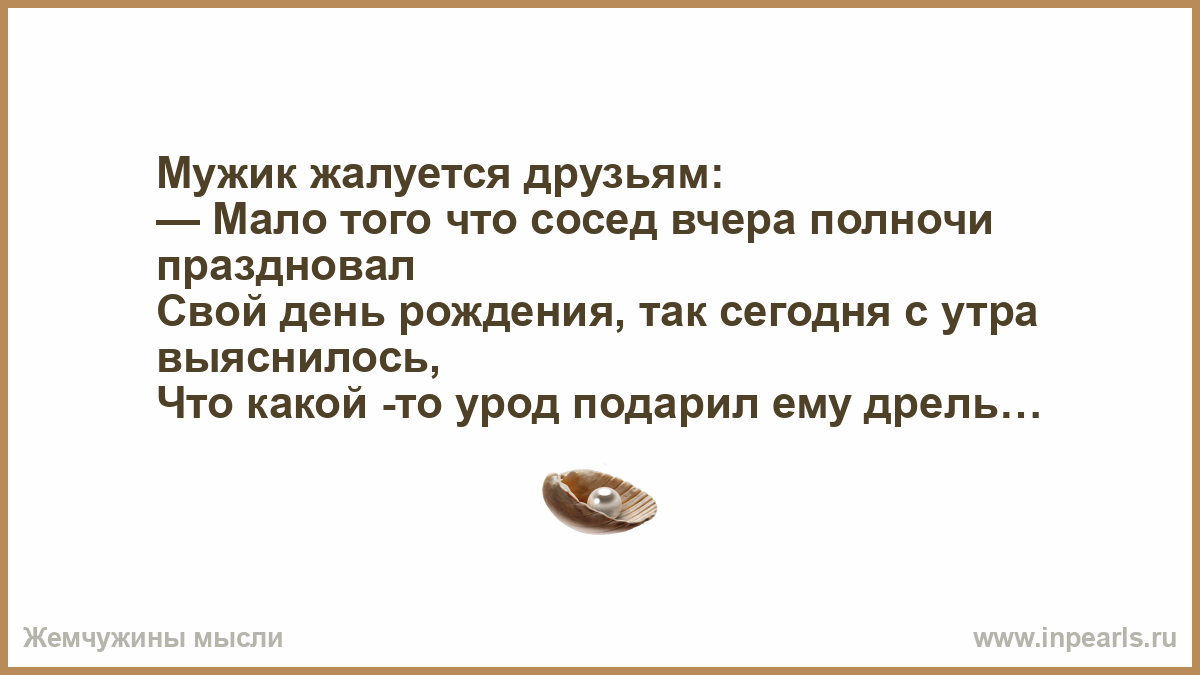 — Очень просто. Он сказал, что вы на дне рождения налили ему кружку пива и у него жуткое похмелье!