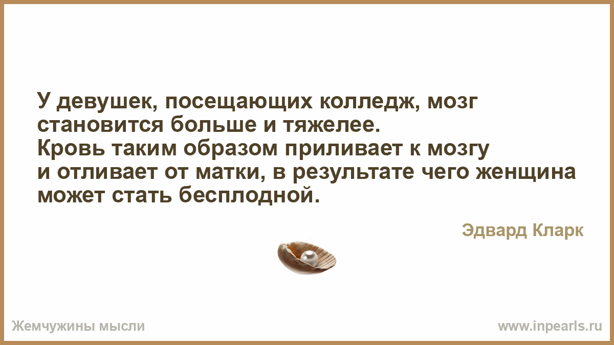 У девушек, посещающих колледж, мозг становится больше и тяжелее. Кровь таким образом приливает к мозгу и отливает от матки, в результате чего женщина может стать бесплодной.