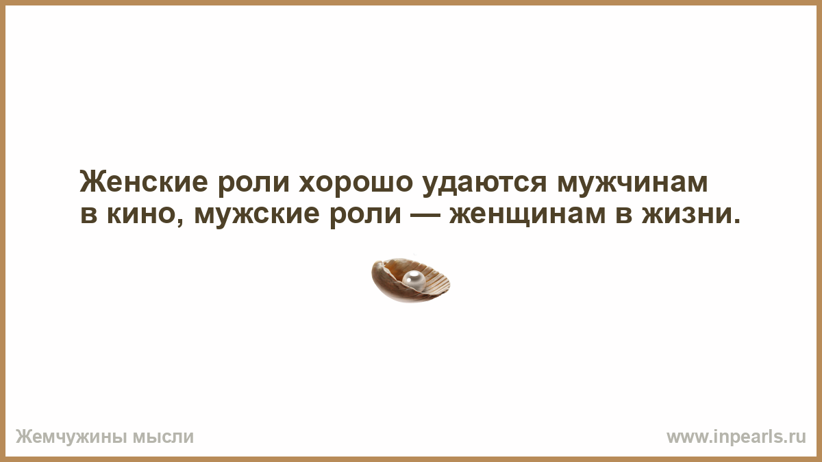 Женские роли хорошо удаются мужчинам в кино, мужские роли — женщинам в жизни.