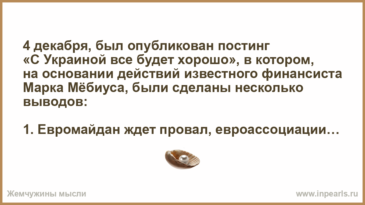 4 декабря, был опубликован постинг «С Украиной все будет хорошо», в котором, на основании действий известного финансиста Марка Мёбиуса, были сделаны несколько выводов: