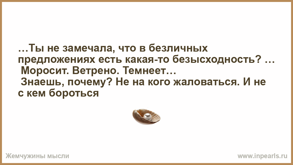 …Ты не замечала, что в безличных предложениях есть какая-то безысходность? …