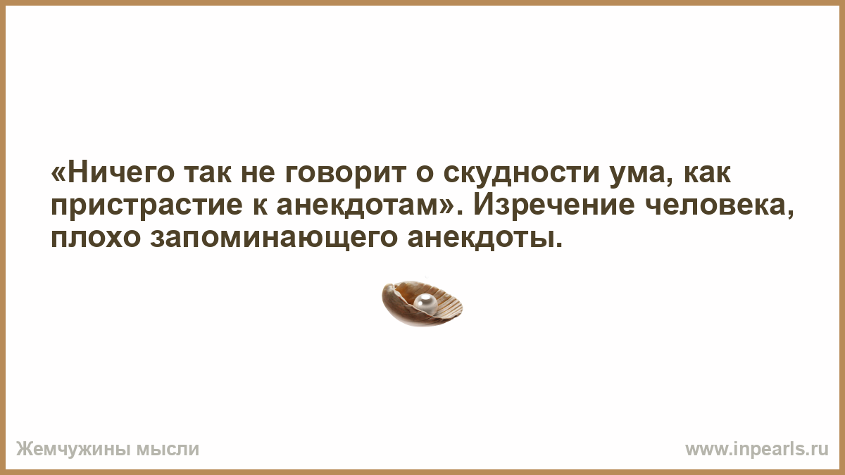 «Ничего так не говорит о скудности ума, как пристрастие к анекдотам». Изречение человека, плохо запоминающего анекдоты.
