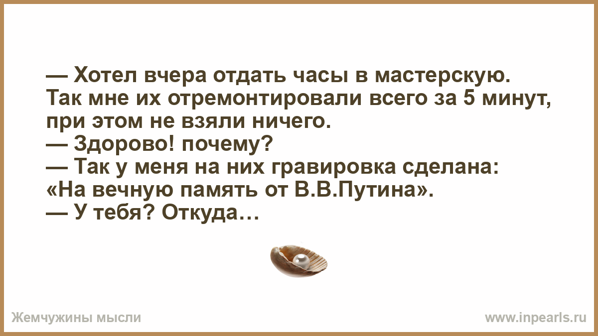 — Очень просто. Он сказал, что вы на дне рождения налили ему кружку пива и у него жуткое похмелье!