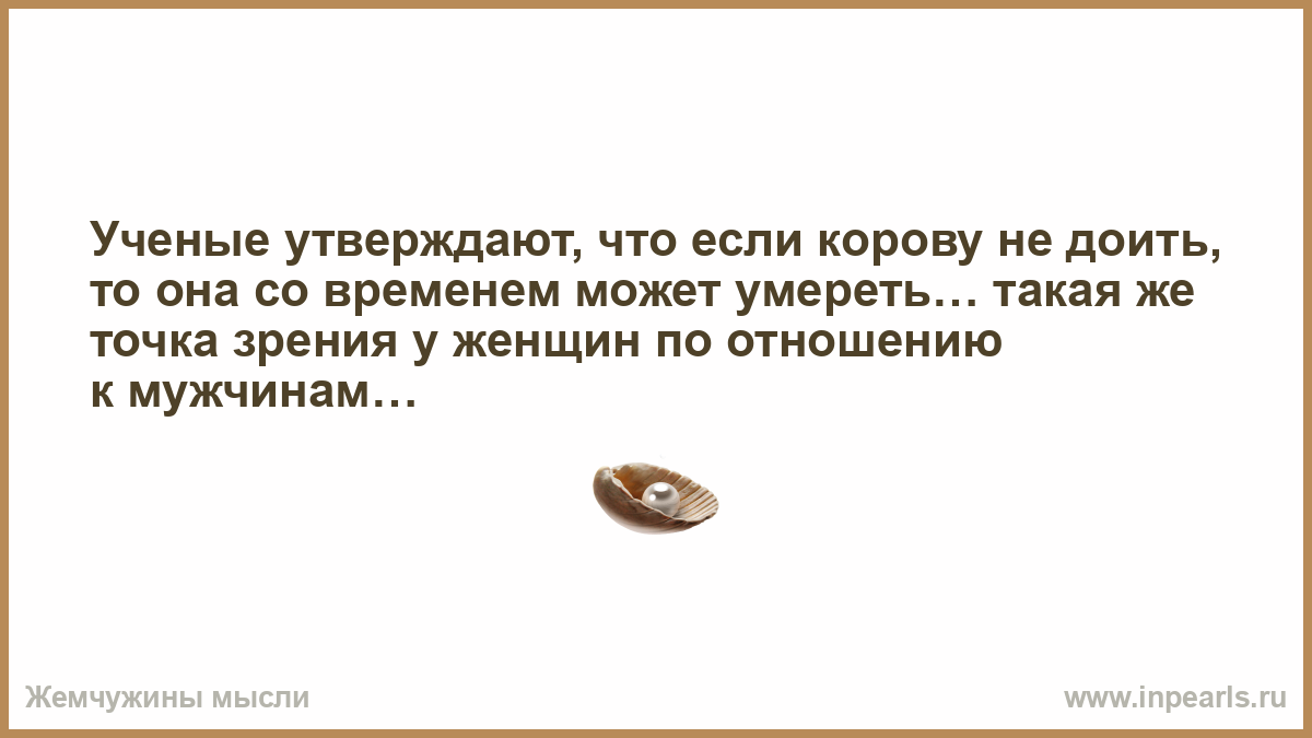 Ученые утверждают, что если корову не доить, то она со временем может умереть… такая же точка зрения у женщин по отношению к мужчинам…