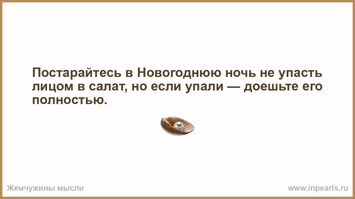 Постарайтесь в Новогоднюю ночь не упасть лицом в салат, но если упали — доешьте его полностью.