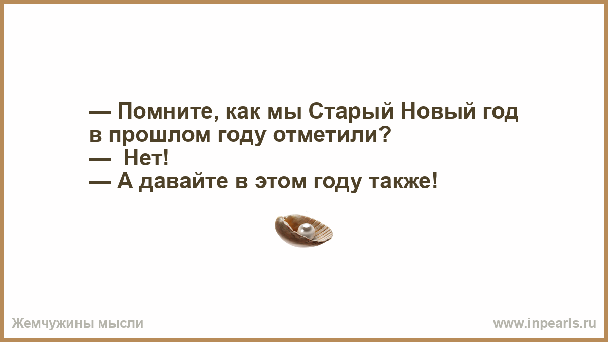 — Помните, как мы Старый Новый год в прошлом году отметили? — Нет! — А давайте в этом году также!