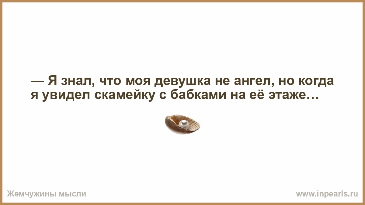 — Я знал, что моя девушка не ангел, но когда я увидел скамейку с бабками на её этаже…