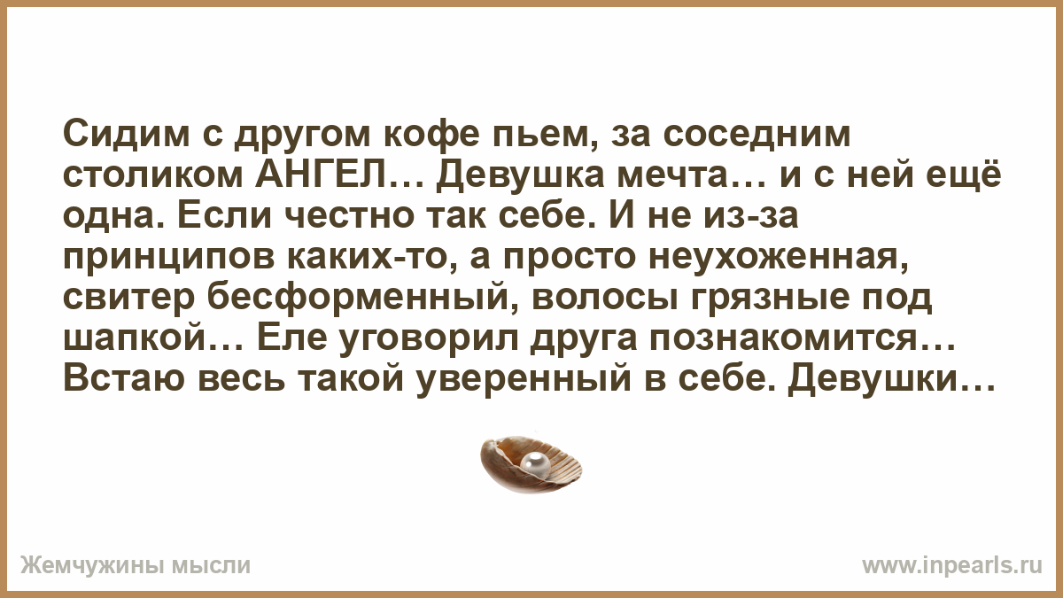— Когда они говорят без умолку и действуют на нервы. Неужели нельзя полчаса помолчать? Неужели обязательно рассказывать про своих подруг и подруг их подруг? Разве н…