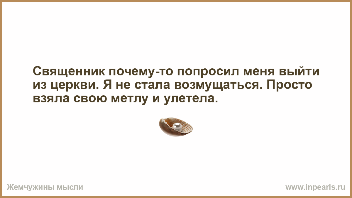 Священник почему-то попросил меня выйти из церкви. Я не стала возмущаться. Просто взяла свою метлу и улетела.