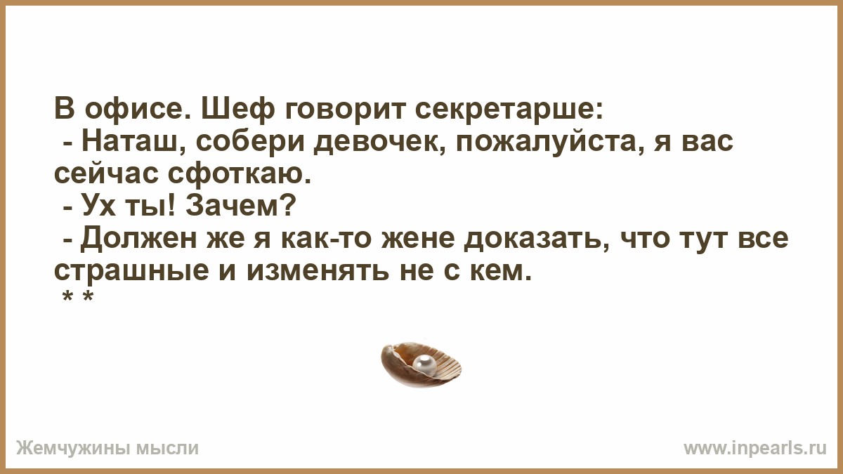 - Должен же я как-то жене доказать, что тут все страшные и изменять не с кем.