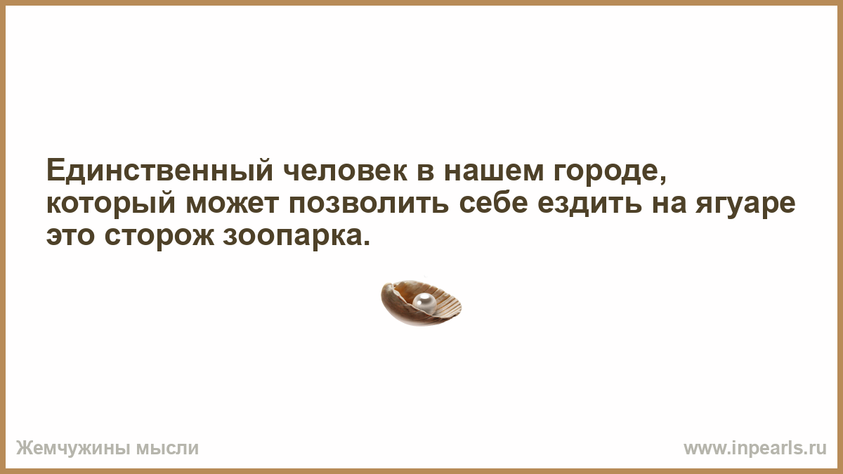 Единственный человек в нашем городе, который может позволить себе ездить на ягуаре это сторож зоопарка.