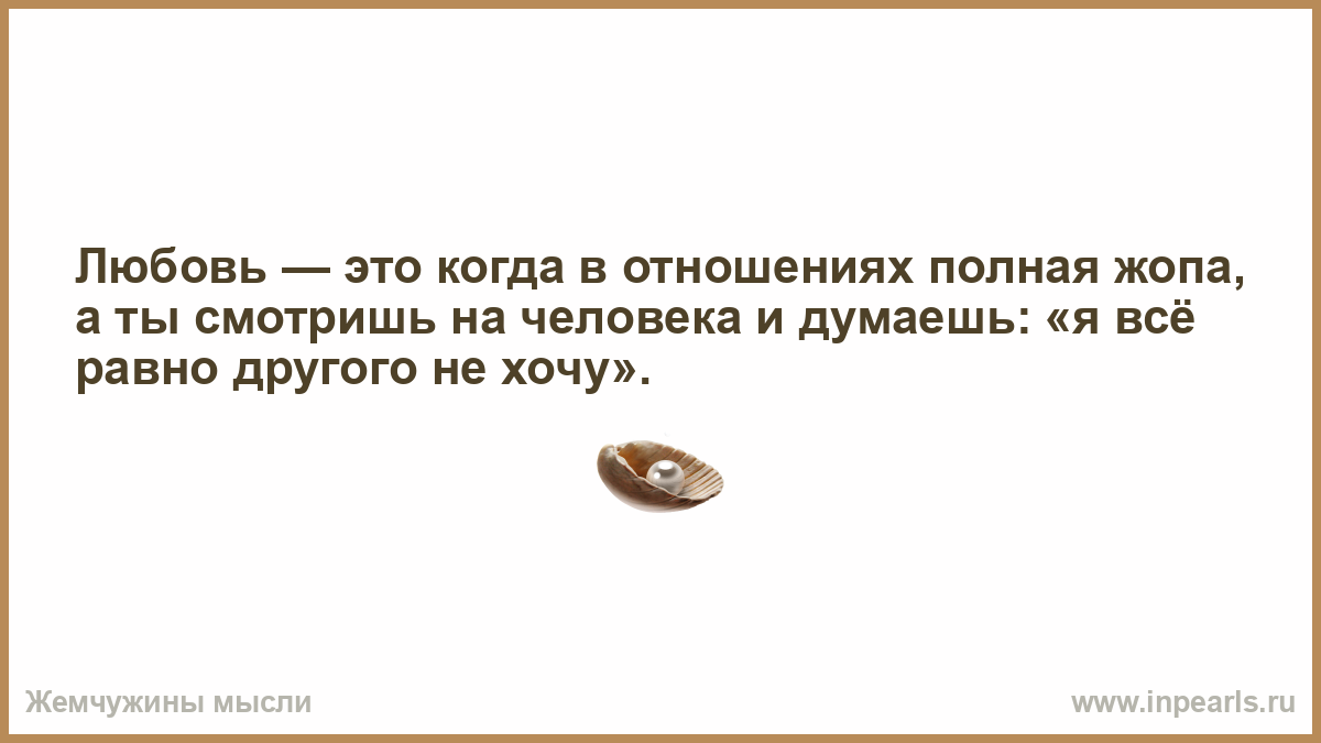 Любовь — это когда в отношениях полная жопа, а ты смотришь на человека и думаешь: «я всё равно другого не хочу».