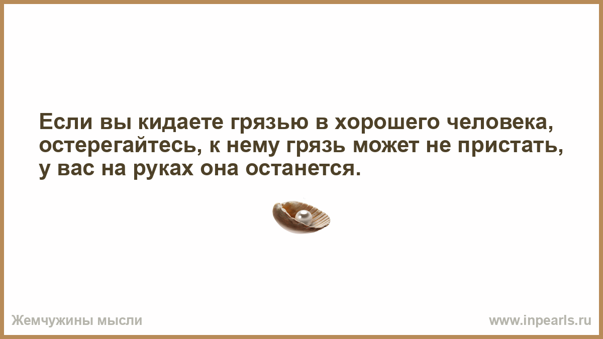 Если вы кидаете грязью в хорошего человека, остерегайтесь, к нему грязь может не пристать, у вас на руках она останется.