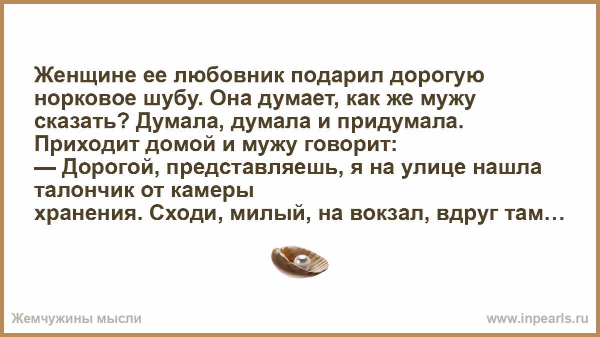 Женщине ее любовник подарил дорогую норковое шубу. Она думает, как же мужу