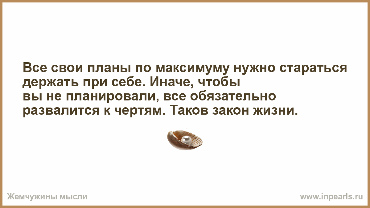 Все свои планы по максимуму нужно стараться держать при себе. Иначе, чтобы вы не планировали, все обязательно развалится к чертям. Таков закон жизни.