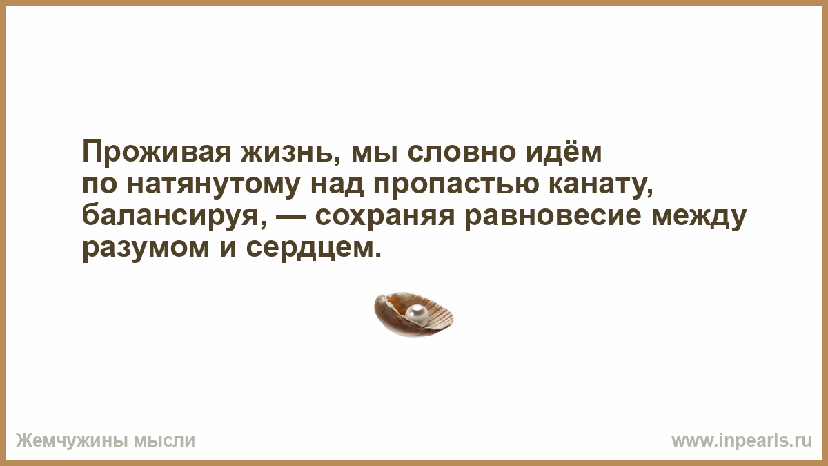 Проживая жизнь, мы словно идём по натянутому над пропастью канату, балансируя, — сохраняя равновесие между разумом и сердцем.