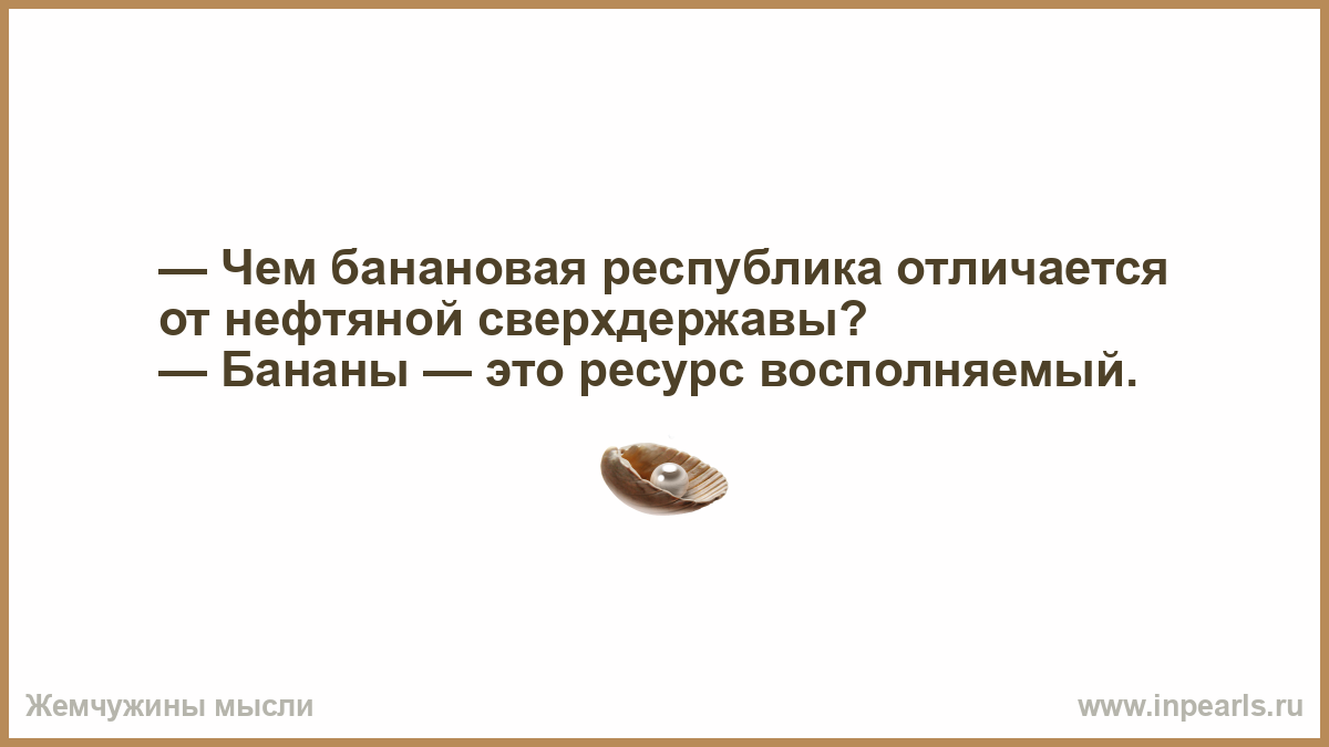 — Чем банановая республика отличается от нефтяной сверхдержавы? — Бананы — это ресурс восполняемый.