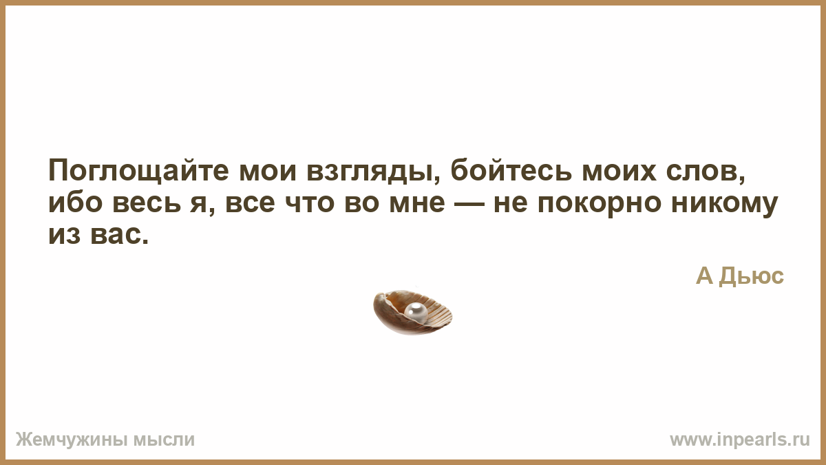 Поглощайте мои взгляды, бойтесь моих слов, ибо весь я, все что во мне — не покорно никому из вас.