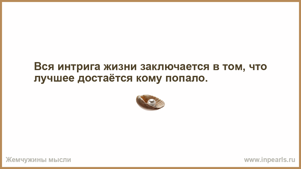 Вся интрига жизни заключается в том, что лучшее достаётся кому попало.