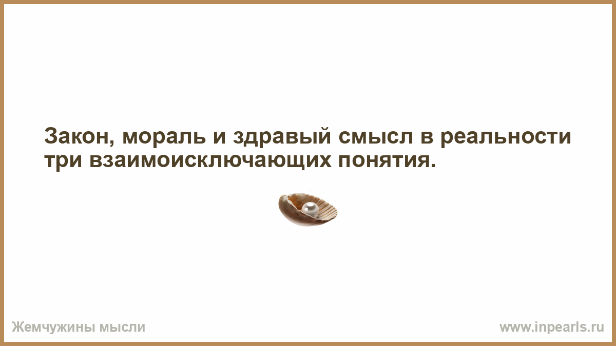Закон, мораль и здравый смысл в реальности три взаимоисключающих понятия.