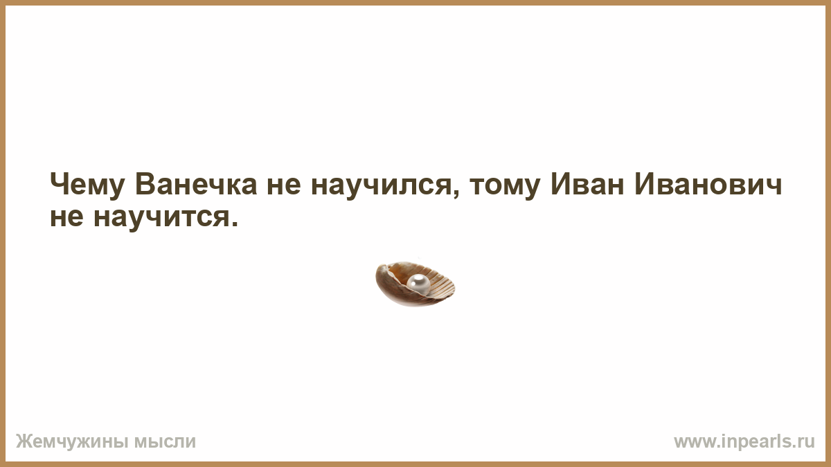 Чему Ванечка не научился, тому Иван Иванович не научится.
