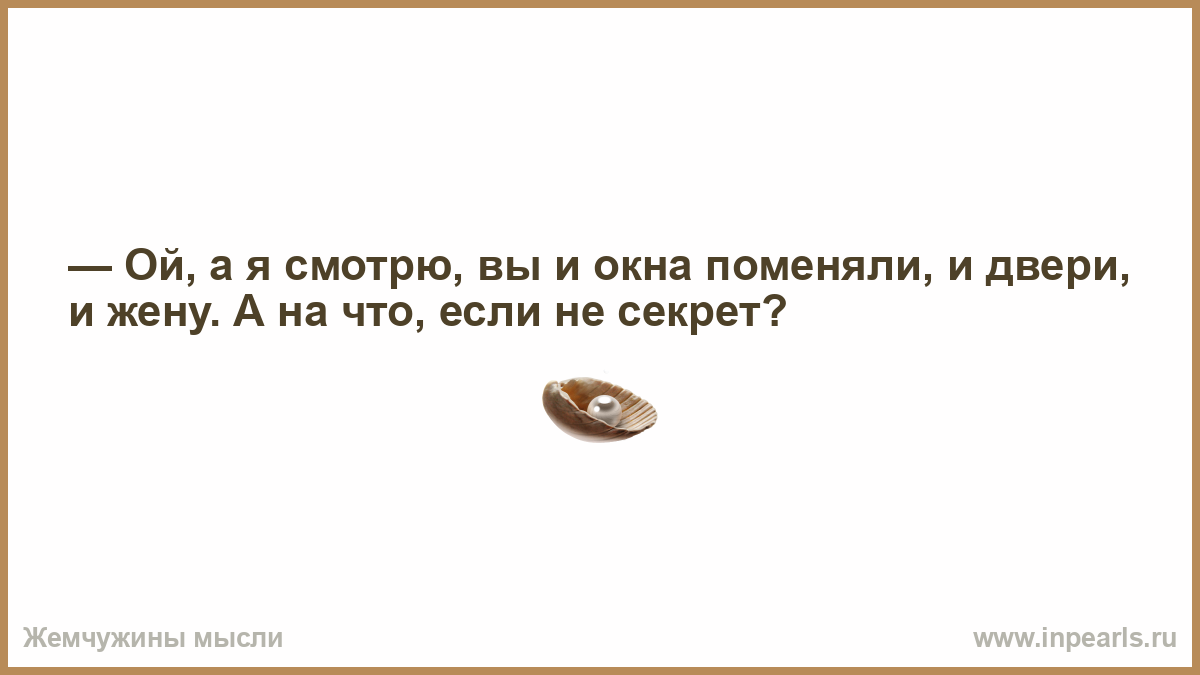 — Ой, а я смотрю, вы и окна поменяли, и двери, и жену. А на что, если не секрет?