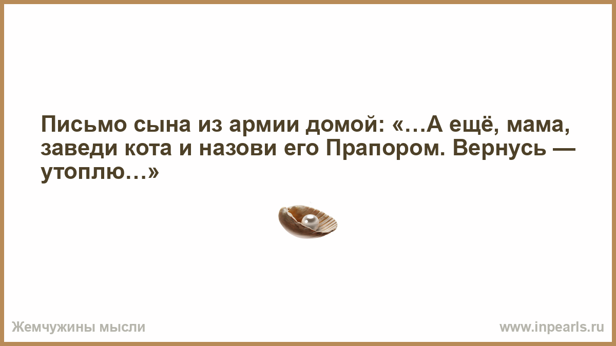 Письмо сына из армии домой: «…А ещё, мама, заведи кота и назови его Прапором. Вернусь — утоплю…»