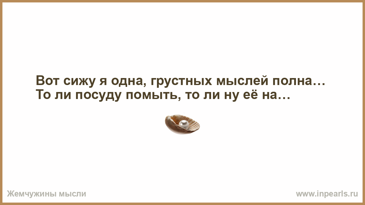 Вот сижу я одна, грустных мыслей полна… То ли посуду помыть, то ли ну её на…