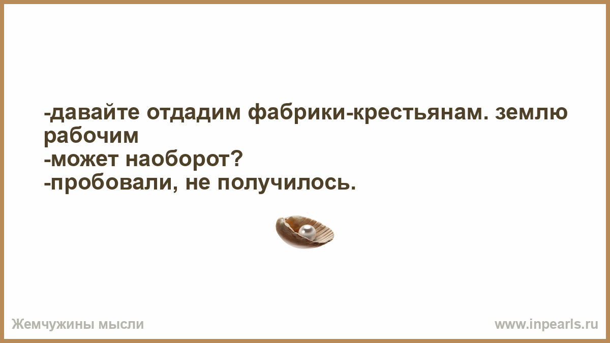 -давайте отдадим фабрики-крестьянам. землю рабочим -может наоборот? -пробовали, не получилось.