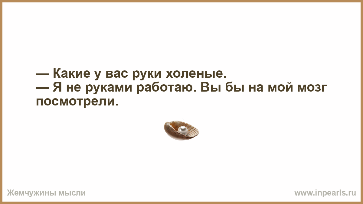 — Какие у вас руки холеные. — Я не руками работаю. Вы бы на мой мозг посмотрели.