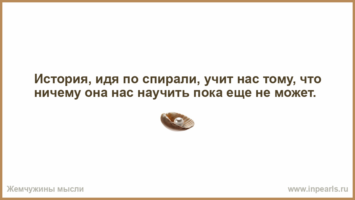 История, идя по спирали, учит нас тому, что ничему она нас научить пока еще не может.