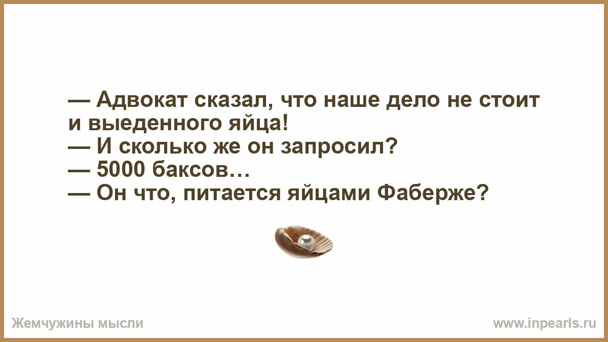 — Адвокат сказал, что наше дело не стоит и выеденного яйца!
