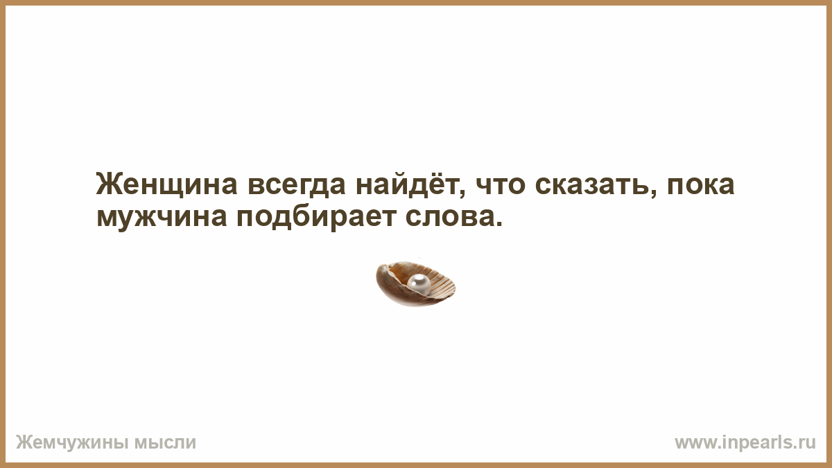 Женщина всегда найдёт, что сказать, пока мужчина подбирает слова.