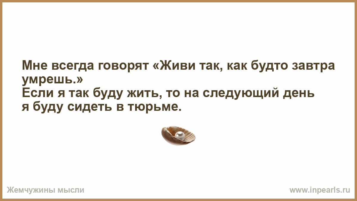 Мне всегда говорят «Живи так, как будто завтра умрешь.» Если я так буду жить, то на следующий день я буду сидеть в тюрьме.