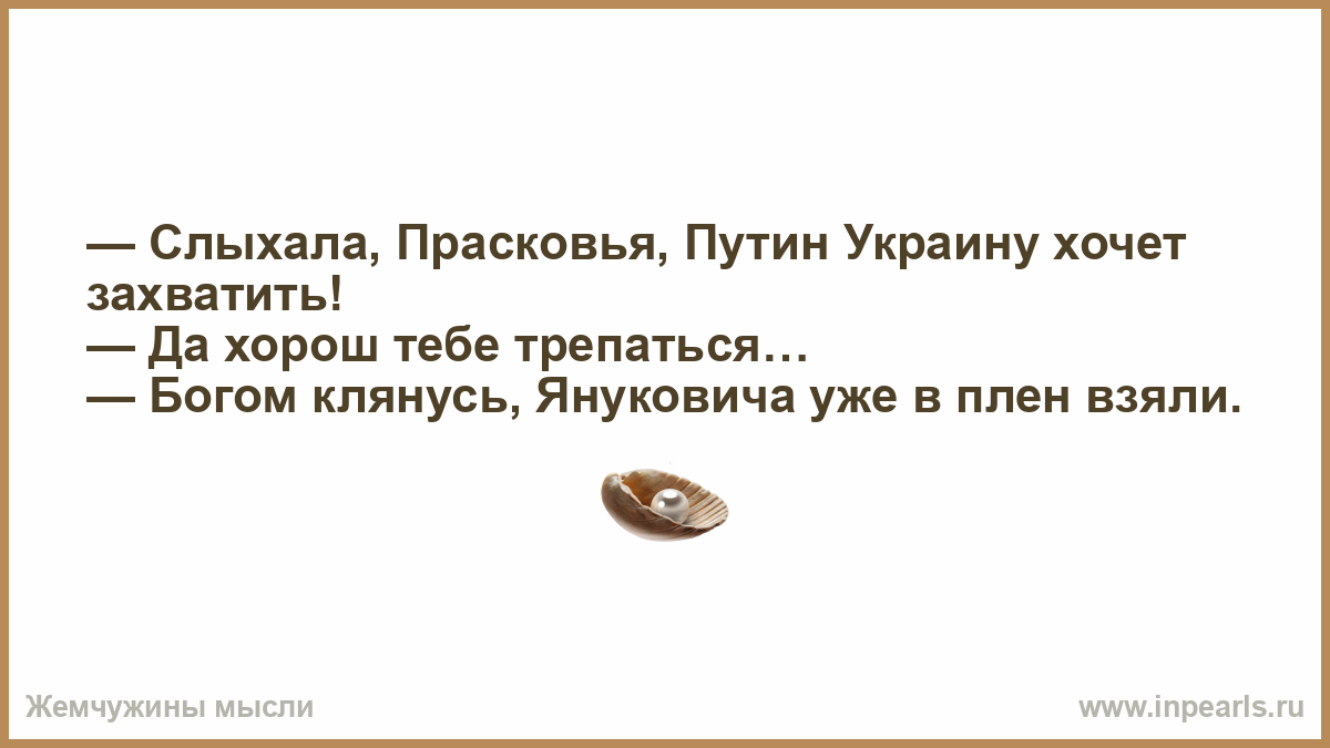 — Слыхала, Прасковья, Путин Украину хочет захватить!
