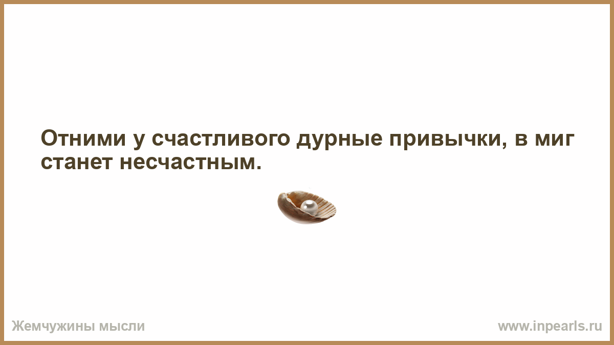 Отними у счастливого дурные привычки, в миг станет несчастным.