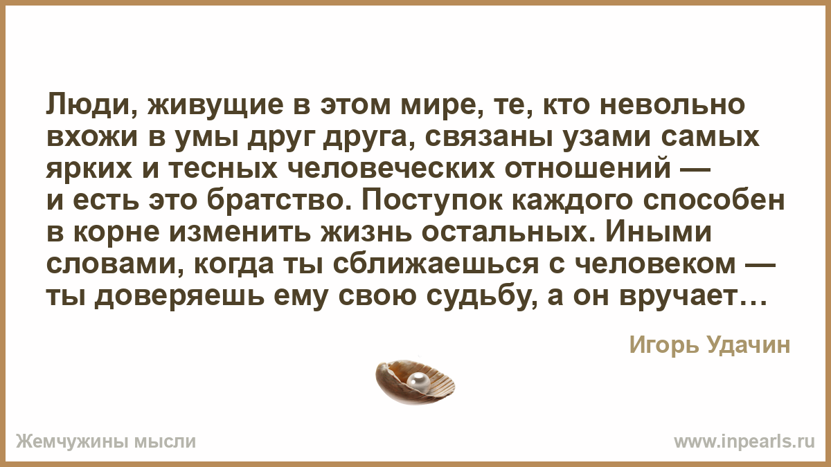 Мы хотим, чтобы нас любили, мы хотим, чтобы нас ценили, мы хотим, чтобы нас признавали. За красоту, мудрость, доброту, романтичность, оригинальность, талантливость, щедрость, чувственность, сексуальность, логичность, любовь, нежность, честь, за все те ценности, которые мы любим находить в себе. Жизнь как гимн личности, смысл ее, как самовыражение. И если кто-то отказывается увидеть в нас ту самую жемчужину, в которую мы свято верим, возникают мифы о непонимании. И в этом пути каждый достигает це…