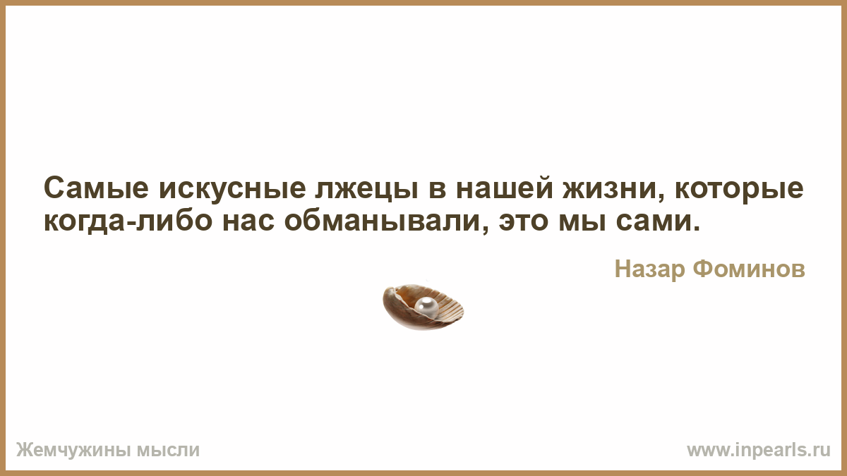 Самые искусные лжецы в нашей жизни, которые когда-либо нас обманывали, это мы сами.